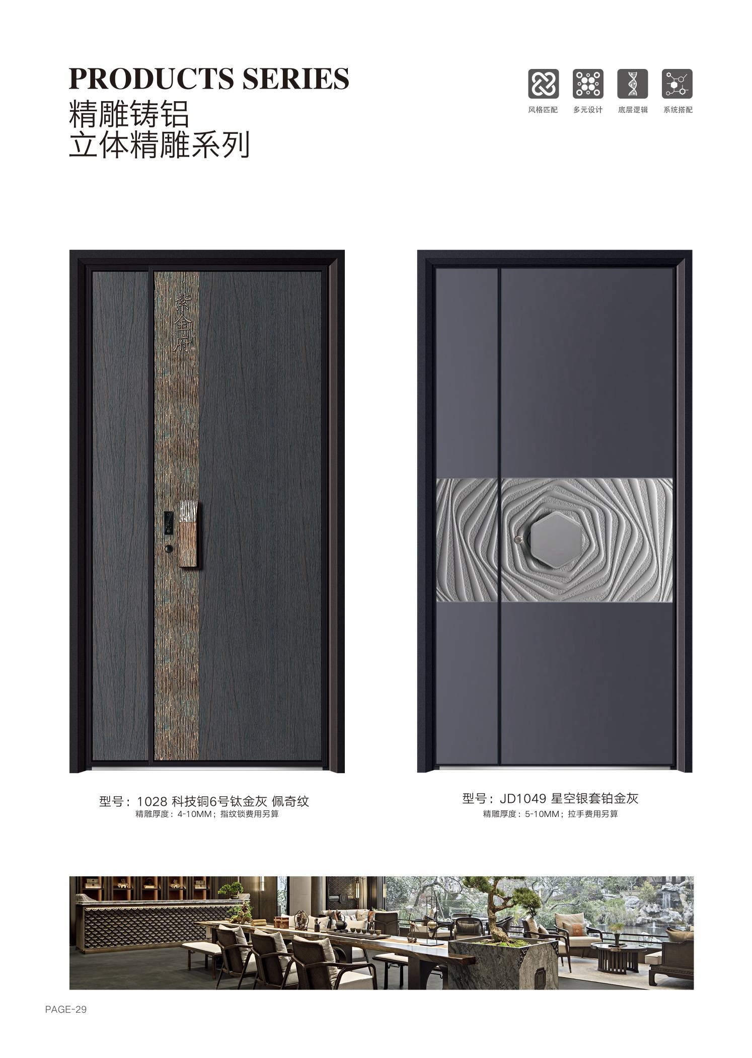 耀龙盛世别墅门处处考究的精工美学,从细微之处打造舒适家居生活,给你最贴心的享受。不断研发和引进先进工艺技术,每一个部件,每一道工序,毫厘中苛求完美,确保每一款门的品质稳定性。